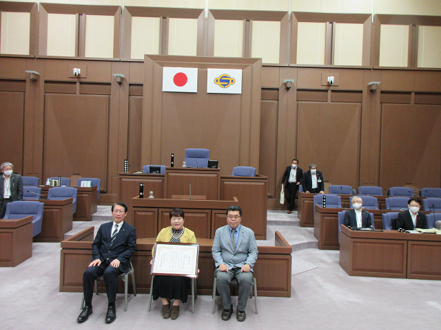 今日は本会議最終日。そのあと私に25年の表彰をしていただきました。正確には全国市議会議長会からの表彰状を議長が伝達してくださるのです。議場で全議員と市長や教育長が参列してくださる表彰ははじめてうけました。