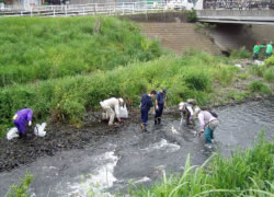 目久尻川ふるさとネットワークで作成した散策絵図 1部100円以上の寄付によりおわけしています。 取り扱いは中央公民館内市民活動センターあやせと吉野橋たもとの大判焼きのはしもと屋さん。 5月第2日曜、10月第1日曜は目久尻川の日 午前9時から12時まで源流から河口までいっせいに清掃活動をおこないます。 清掃活動の模様